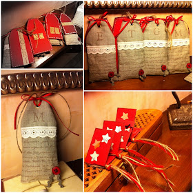 Queste tag profuma armadi le avevo già realizzate e regalate ad alcune mie amiche incontrate ad Abilmente in Fiera a Vicenza e ora le ho rifatte in versione natalizia...Fotografate alla luce calda delle candele per suggerire atmosfere di freddo, di neve, di odore di legna bruciata nel caminetto, di vin brulè e dolcetti speziati...Domani voleranno via...!